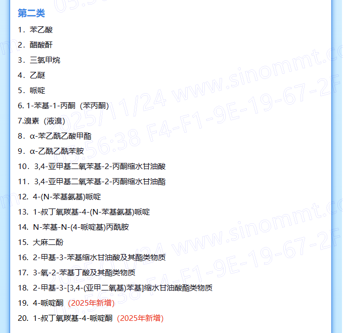 为严格易制毒化学品管理,严防流失用于制毒,经国务院批准,公安部、商务部、卫生健康委、应急管理部、海关总署、国家药监局于2025年6月20日联合发布公告,增补了部分化学品予以管制。本期特整理了易制毒化学品名录(2025最新版),以方便大家日常查阅。